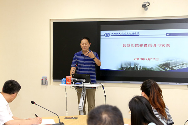 7月12日下午,教育技术中心邀请滨州医学院烟台附属医院信息中心李向阳主任为全体计算机教师做医学信息技术专场报告,李主任报告的题目是《智慧医院建设指引与实践》。会议由宫小飞主任支持,教育技术中心所有专兼职教师参加。