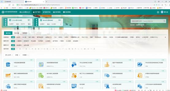 第四步:点击“办事大厅”,即可打开新的网址页面,该页面显示了所有的常用办事流程,方面师生各项业务的线上办理。目前仅实现了多媒体预约的功能,还需要各业务部门提出具体需求进行开发,所以大家暂时不要用该模块功能。