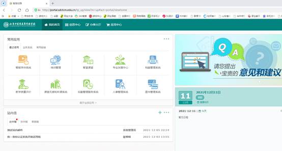 学校统一门户系统已基本部署完毕,现在面向全校教师使用,使用方法见附件。由于还处于完善阶段,欢迎大家提出宝贵意见,意见可在企业微信群的收集表中提交。