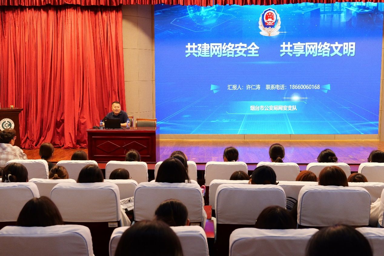 9月17日下午,学校特邀烟台市公安局网安支队许仁涛副队长,在仁和楼报告厅为全校师生带来了一场题为“共建网络安全,共享网络文明”的专题讲座。讲座通过线上线下直播方式同步进行,全校7000余名师生观看。专家结合多年实战经验,分析了近年来高发的网络犯罪类型,揭示了刷单诈骗、网贷陷阱、冒充客服、游戏账号交易等常见骗局的操作手法,并给出了具体的防范建议。