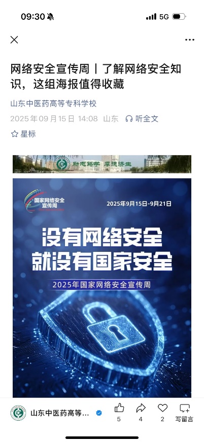 学校充分发挥新媒体传播优势,通过官方企业微信公众号推送了网络安全科普文章。文章提醒全校师生注意网络安全,有效扩大了宣传覆盖面。