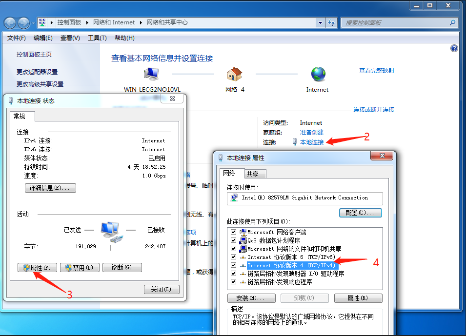 4.在本地连接属性中,双击“Internet协议版本4(TCP/IPv4)”