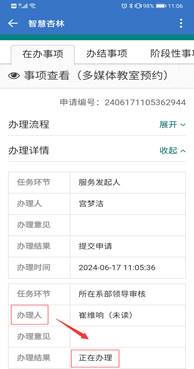 老师可以在企业微信-工作台-“多媒体教室预约”-“正在办理中的事项”-“在办事项”查看自己的流程通过情况。