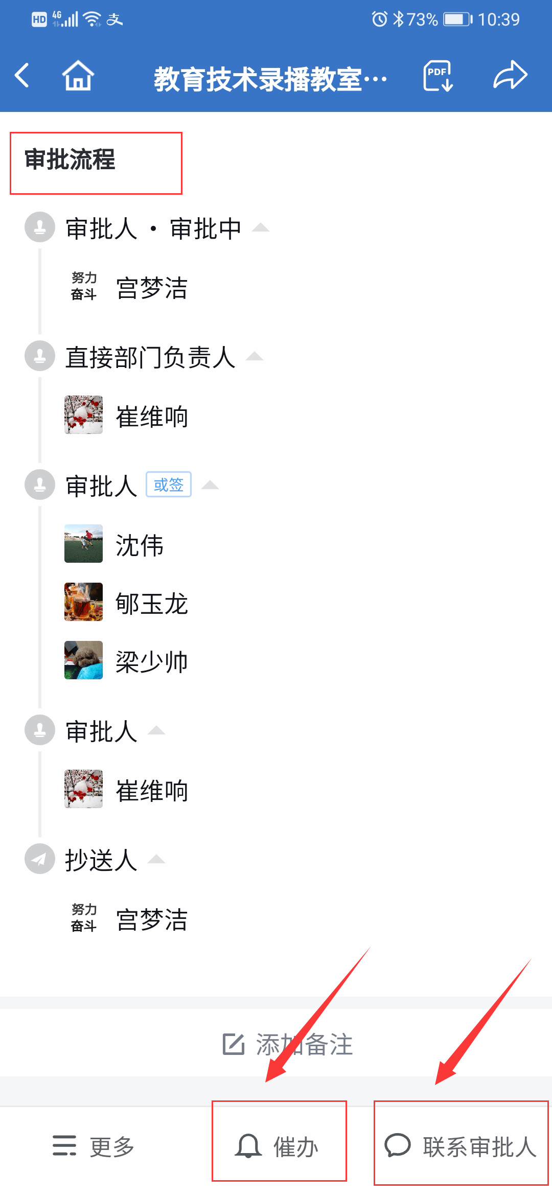 老师可以在企业微信-工作台-“审批”-“已提交”-“当前审批”-“审批流程”查看自己的流程审批情况。