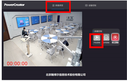 1.在大屏上将上课资料准备就绪后,回到多功能控制面板处,点击“录播课堂”界面,按一下“开始录制”按钮,出现5秒倒计时后,开始录制计时,即开始录制上课。